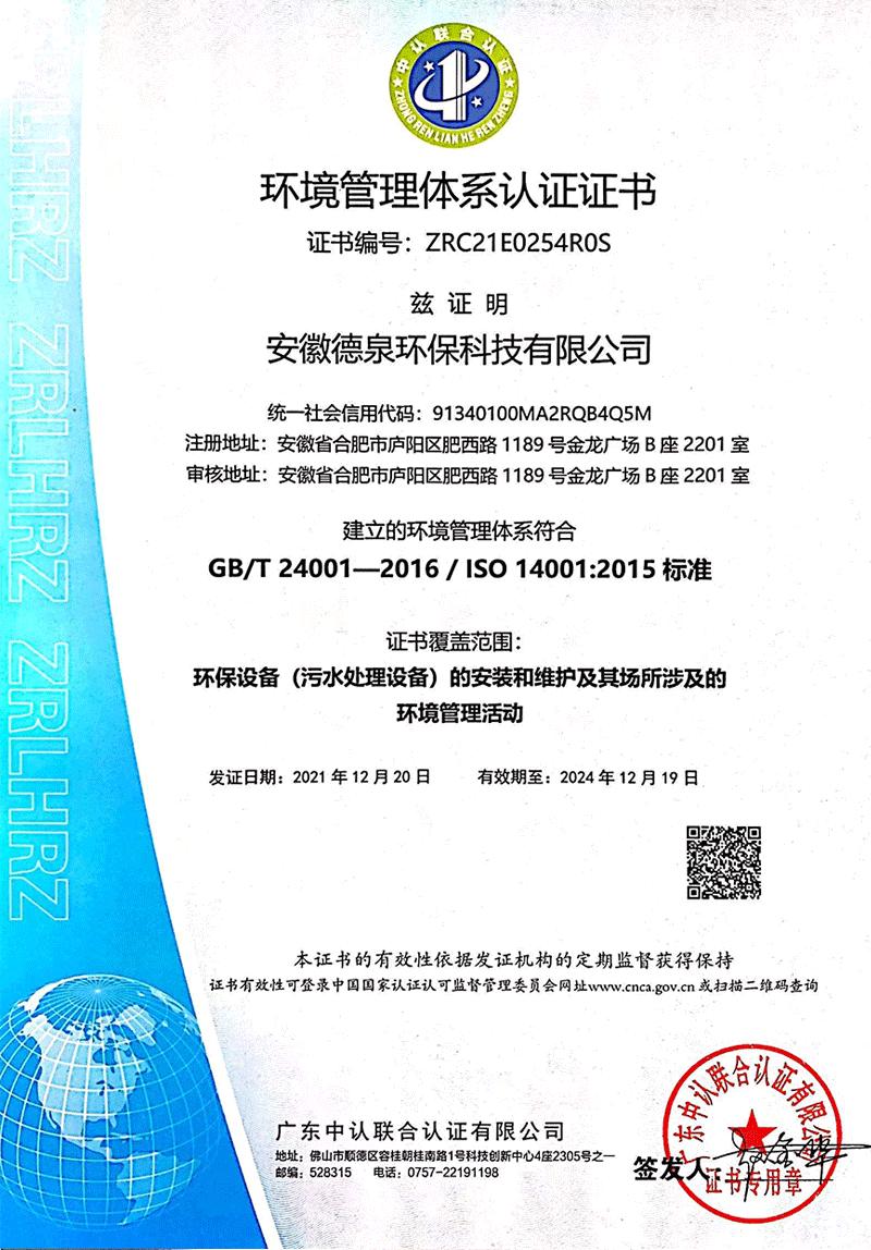 安徽德泉環(huán)??萍加邢薰局铝τ趶U水、廢氣、固廢技術(shù)處理研發(fā)、設(shè)計(jì)、施工及運(yùn)營(yíng)管理,從事環(huán)保設(shè)備及設(shè)施的制造和銷售,為環(huán)保項(xiàng)目系統(tǒng)提供專業(yè)的技術(shù)咨詢和服務(wù)。是一家集建筑勞務(wù)分包,工程總承包(EPC)、項(xiàng)目投資(BOT/PPP)、運(yùn)營(yíng)管理(O&M)于一體的綜合性新型高科技企業(yè)。
